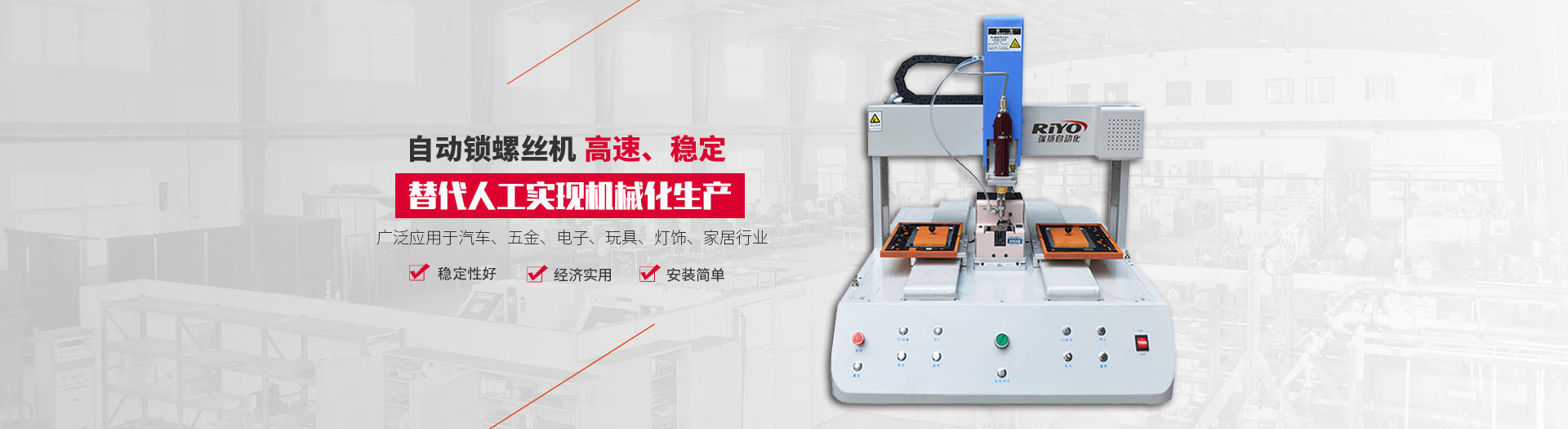 自動(dòng)送鎖螺絲機(jī)適用于各類消費(fèi)電子產(chǎn)品的螺絲鎖附,如手機(jī)、無繩電話、計(jì)算器、導(dǎo)航儀、音響、相機(jī)、筆記本電腦、平板電腦、學(xué)習(xí)機(jī)、小家電等